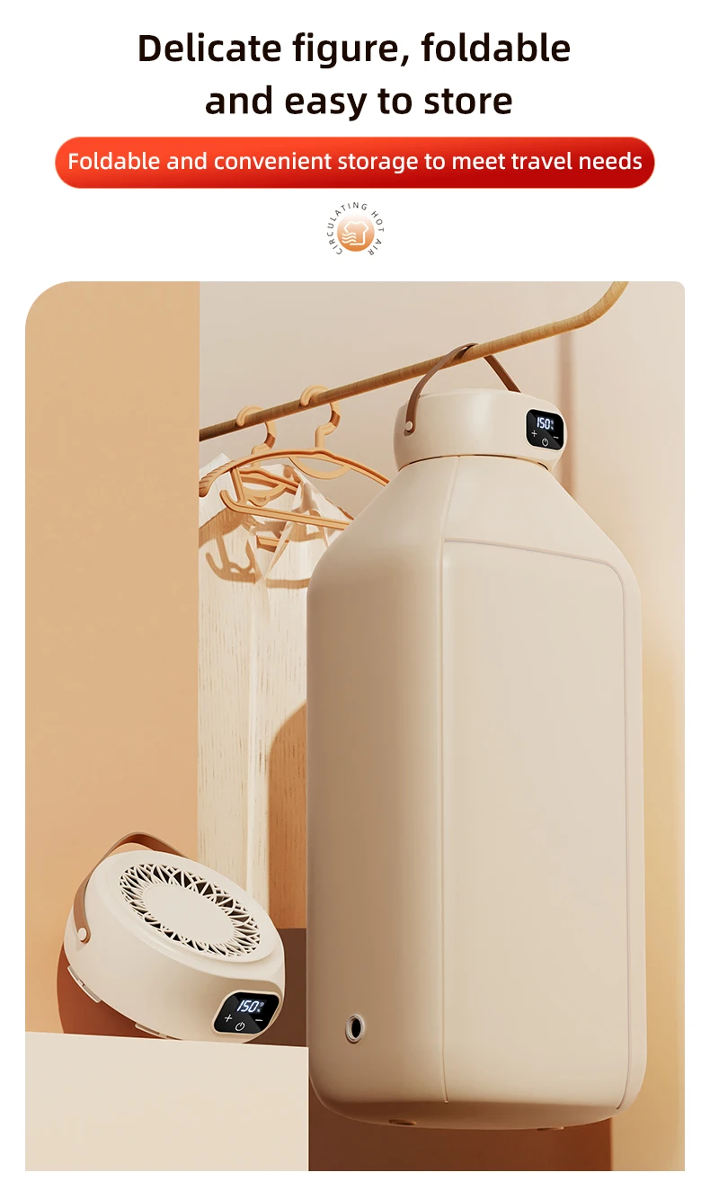 The Portable Clothes Dryer is not just about speed; it's also about cleanliness. Built-in LED UV technology provides an additional layer of purification, ensuring your clothes are not only dry but also revitalized with impeccable cleanliness. This feature is particularly beneficial for those who prioritize hygiene and freshness in their wardrobe. The dryer's whisper-quiet operation ensures that your laundry routine is not disruptive, making it a perfect choice for those who value a peaceful environment.